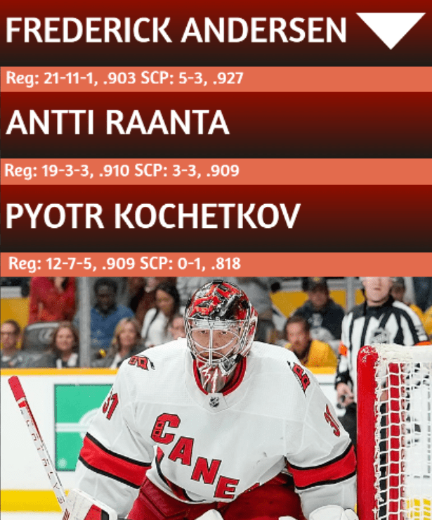 Hockey season is looming, and the Carolina Hurricanes once again look like clear cup contenders. With what is probably the best defense in the NHL, and an offense that is solid in it’s own right, you could argue that the biggest wildcard this season for the Canes is their goaltending. The team has 3 goalies who are going to battle it out for starts. These goaltenders are Frederik Andersen, Antti Raanta, and Pyotr Kochetkov. Andersen is a veteran who after an incredible performance in last years playoffs opted to stay in Raleigh on a two year, $7m extension. Antti Raanta is also a veteran, aged 34, and is pretty much all you could ask for in a backup. Pyotr Kochetkov is a young wildcard who had a phenomenal start to last year’s campaign that ended up going downhill after he won the ROTM award in December