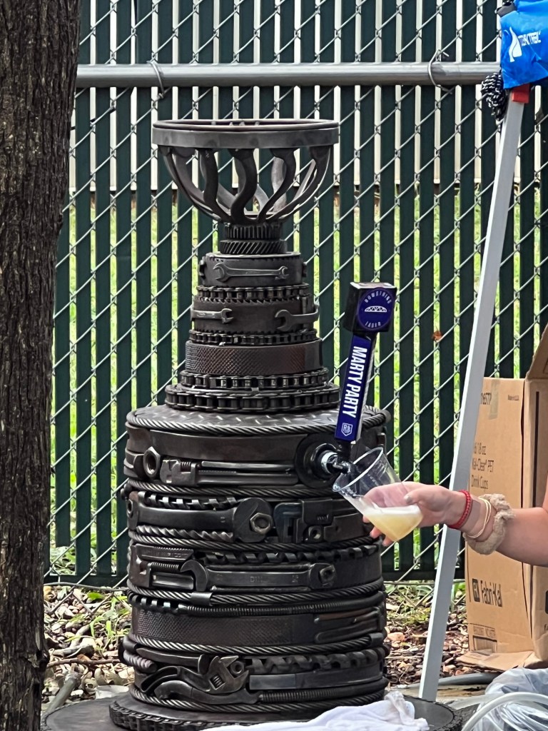 The party, hosted by Bowstring Pizza and Brewery and R&D Brewing was a good time and family friendly for a beer launch (I would’ve brought Gabriel had I realized). There was beer, pizza, very good live music from BackBurner and Four Founders, yard games, ‘Canes raffle items (sadly, I didn’t win that #48 jersey!), and a dunk tank because Martinook seems to be a man of the people and a good sport off the ice.